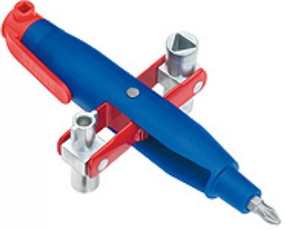 便于携带的笔型控制柜钥匙,带固定夹;通过转动钥匙扣,有四种不同的钥匙外形可供使用;钥匙方边长为:5;6+ ;钥匙三角边长为: ;两用的钥匙头的直径为:5mm(内直径)/ (外直径);通用1/4″ 标准批头带永久磁性;插件:PH 2十字槽,可再保留一个批头;主体和固定夹采用GRP塑料材质;工具架和钥匙剖面为锌铸件