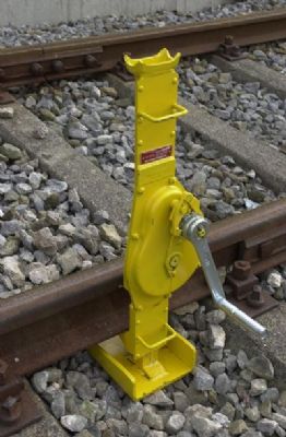 用于提升和降落重物,如钢轨,轨排 有大的加强的脚板/支柱垫板的坚固设计 有负荷压迫制动器和可折叠手柄的安全手摇曲柄
