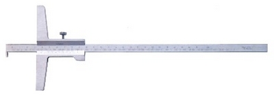 主尺测头和弯头形状,用于测量孔深、槽深, 工件孔口和凸缘的厚度 符合DIN826 由不锈钢制成 带有安全螺丝 激光游标刻度,亚光镀铬 整体淬火加工,双面刻度